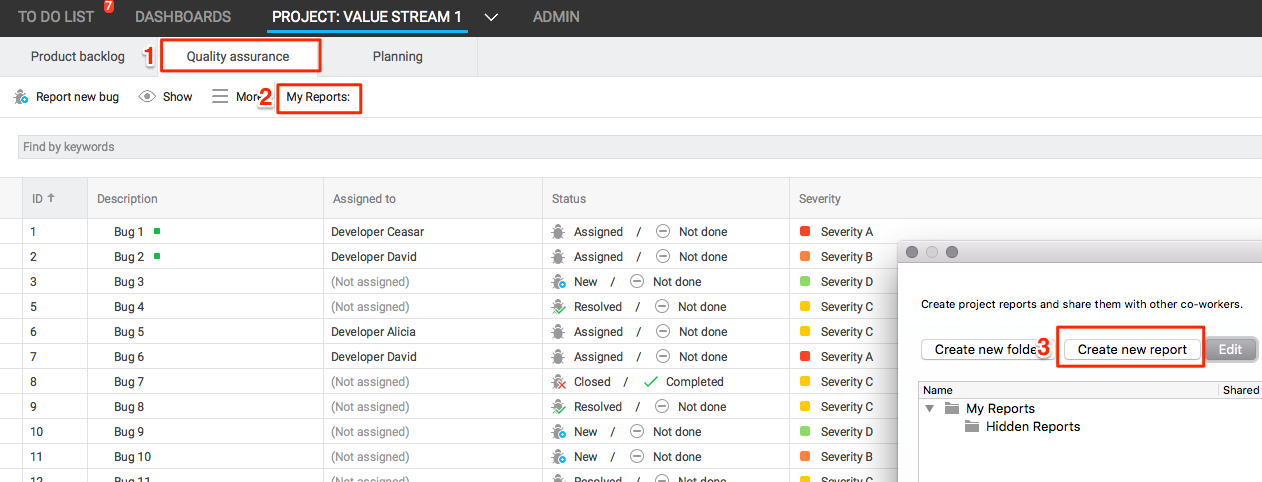 4. Name the report "[Project name] - Open Bugs"