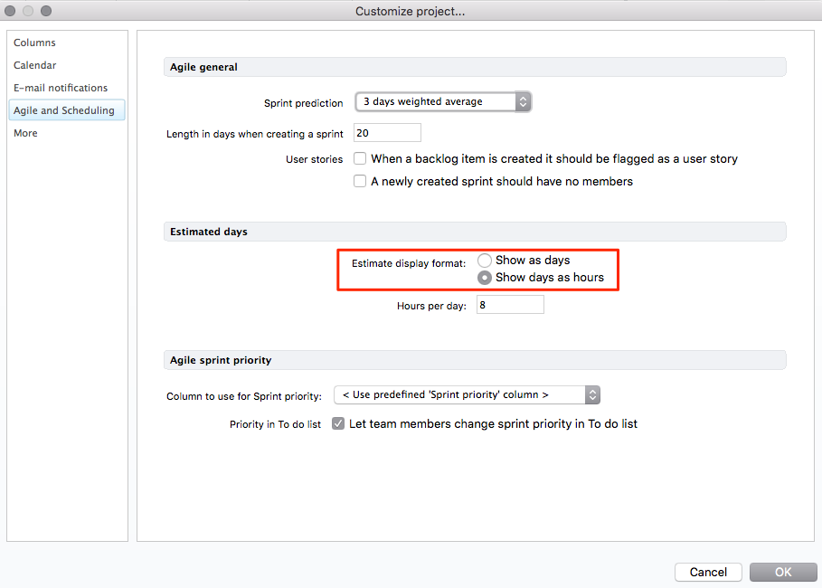 However, from the point in time when this item is committed the user instead set a work remaining value in the planning view. This number is what will show up in the burndowns and in other places and is important to understand from today: how much work remains?