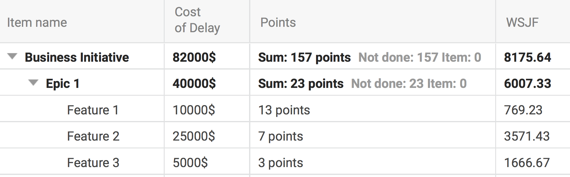 Now the WSJF column will automatically update as the Cost of Delay or Point estimation changes.