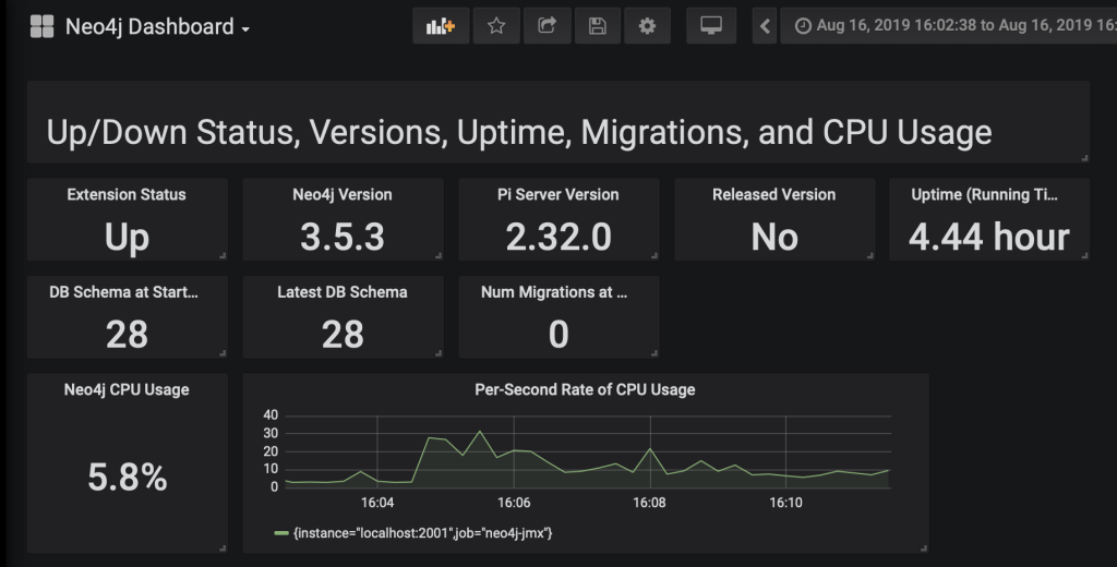 • mdx-piserver Run package >= 2.33.0 for the Prometheus Server, Grafana Server, and JMX Exporter; PiServer & Neo4j extension metrics; and piserver & neo4j run with the JMX Java Agent