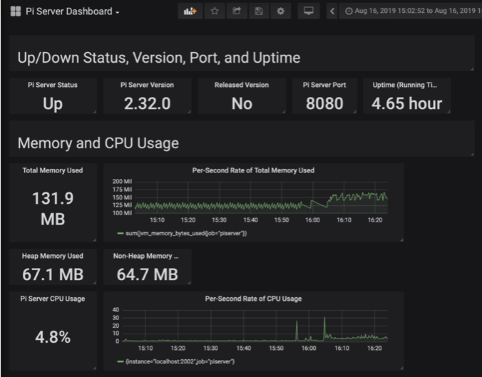 Starting with PiServer version 2.33.0, PiServer and Neo4j metrics are available to be monitored.