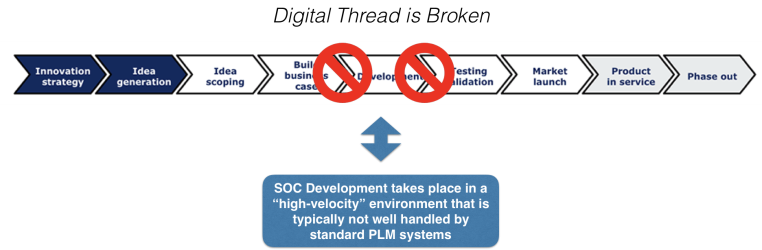 PLM systems generally run into difficulty tracking "high-velocity" design activity this is typical for semiconductor and software flows. The rate of change is so great that it is not feasible to keep the PLM system up-to-date with the current state of the design, and generally there is no centralized, up to date reference for the PLM to query for this information.