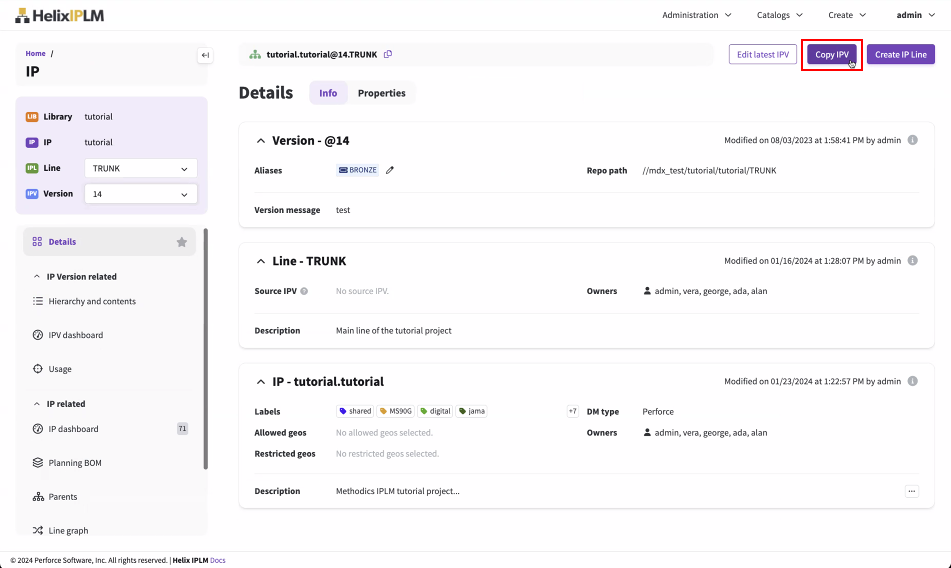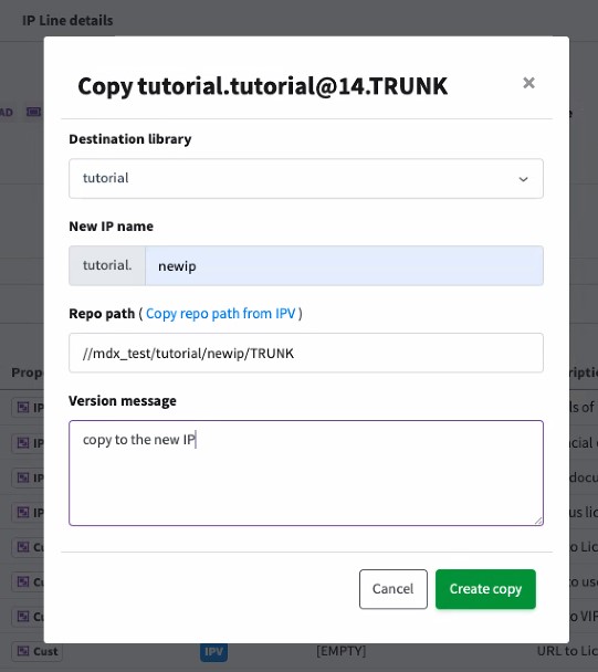 Existing IPs can be copied to new IPs or into new Lines on the same IP. The source of the IP copy can be any release on any line of an existing IP. The metadata associated with the source IP (other than Aliases) is copied to the new IP or Line, including permissions. Perforce
