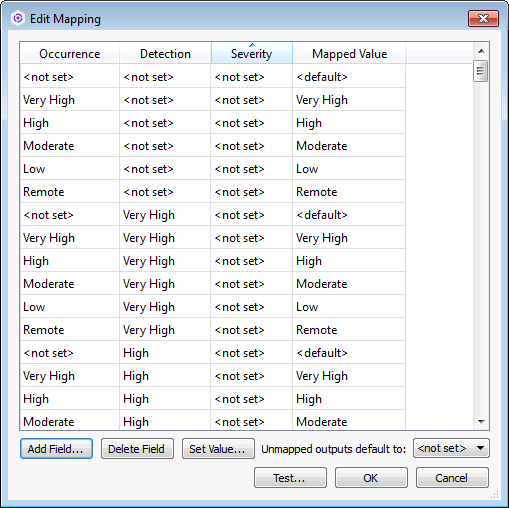 Item.mappedValue("Severity") * Item.mappedValue("Occurrence") * Item.mappedValue("Detection")