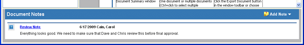 • Document review notes are displayed in the Document Notes area.