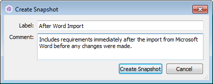 After the import is complete, you may want to create a requirement document snapshot before the imported requirements begin to change. A snapshot is a version of a document used to compare against other versions to view the differences. To create a snapshot, select the requirement document and choose