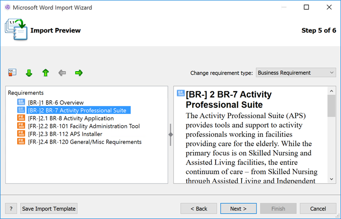 When you are ready, import the Word document into the project in your production environment. Load the import template to use the same settings from the test project. Also, remember to add any new requirement types you created in the test project.
