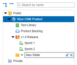 Add folders to organize related items. Helix ALM includes public and private folders.
