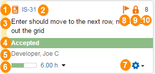 Item tag and number | Tag that identifies the item type and number. For example, in IS-31, IS indicates the item is an issue and the issue number is 31. Click the tag to open the item. |