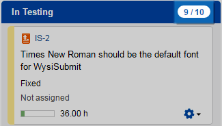The column header displays the column name and the number of items in the column. Depending on the configuration, the column header may also display the Work in Progress (WIP) limit to indicate the maximum number of cards a column can contain in all swimlanes. WIP limits can help you quickly identify bottlenecks that prevent items from moving through the workflow. For example, if a column contains 9 cards and the WIP limit is 10, 9/10 is displayed.