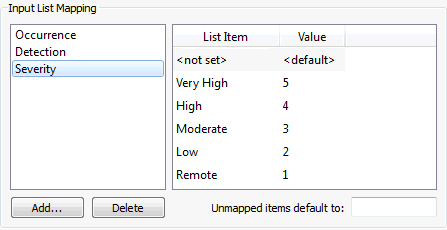 Item.mappedValue("Severity") * Item.mappedValue("Occurrence") * Item.mappedValue("Detection")