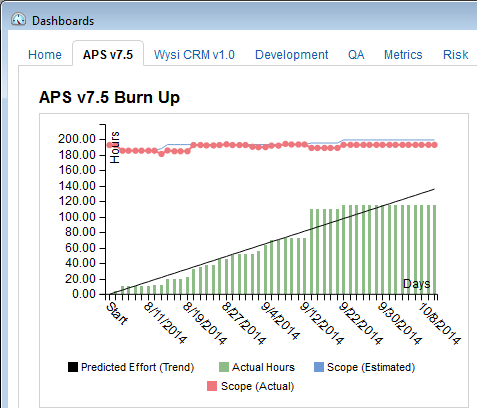 Dashboards can include burn down and burn up widgets that show story points or estimated hours, actual hours, and remaining hours versus the time available to complete a specific iteration, release, or project phase. They can also include other chart widgets to show various time tracking data. See Configuring dashboards.