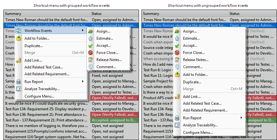 You may want to select this option to make the menu for the selected list window more manageable if your team's workflow has a large number of events.
