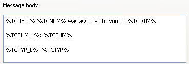 A field code is a variable that is replaced with a specific field value. You can use field codes in email templates to populate emails with specific information about the item that triggered a notification or, in the case of an email acknowledgment, was imported via email. When an email is sent, field codes, which are enclosed in percent signs (%), are replaced with the corresponding data from an item. See Field codes for a list of field codes.