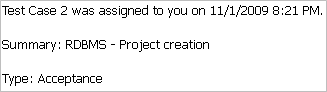 When a test case is assigned, information similar to the following example is included in the sent email.