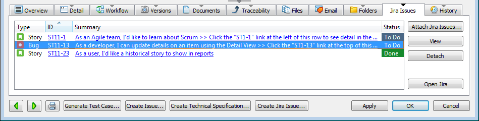 4. Test the integration to make sure it works correctly. Attach Jira issues to Perforce ALM items and create Jira issues from Perforce ALM.