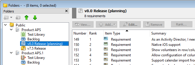 Folder permissions make it easy to share access to folders without the risk of others making undesired changes. You can control who can modify a folder and its contents. For example, you may want only a product owner to manage a release folder and its sprint subfolders to ensure only the agreed-upon user stories are in a sprint folder.