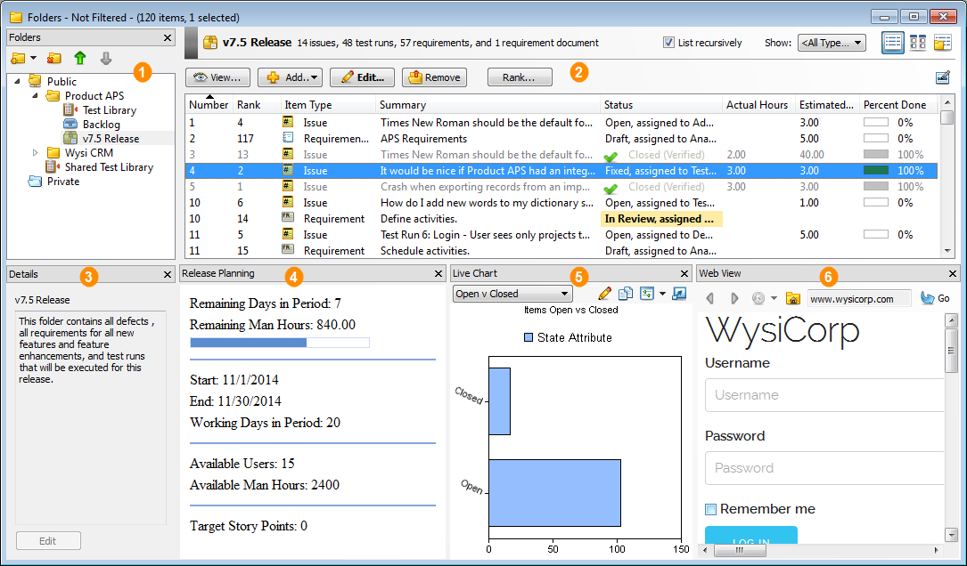 Release Planning pane | A release schedule overview if release planning information is configured for the folder. |