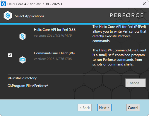 4. To confirm that P4 API for Perl was installed correctly, open a command prompt and run: