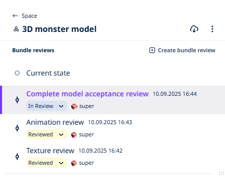 Every asset and asset bundle in a review has a status that is tracked on the project Kanban board. For example, you can see the progress of a review through its lifecycle, from creation through to release. You can change the status on the asset, on the bundle, or on the Kanban board. To learn more about the Kanban board, see Kanban board.
