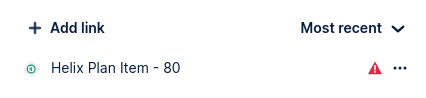 When viewing an asset with related P4 Plan links, no additional information about the P4 Plan item is displayed and a warning icon is displayed next to the link. Point to the icon to view more information.