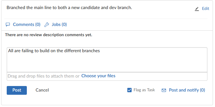 Comments are the primary feedback mechanism provided by P4 Code Review. Review comments can be flagged as tasks for a lightweight workflow within a review that helps authors and reviewers prioritize review feedback, see Tasks for details. By default, comment notifications are delayed to allow you to add or edit comments as you progress through a review without sending a notification for each individual comment on the review. Comment notifications are rolled up into a single notification that you can either leave to be sent automatically, or you can send manually, see Comment notification delay.
