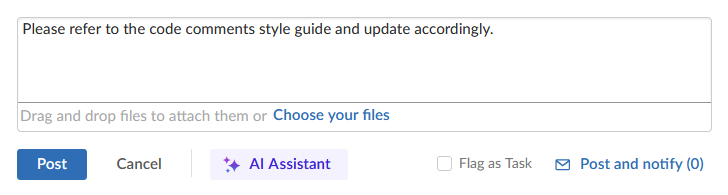 Use the AI Assistant to review and improve the text in a comment before you post it.
