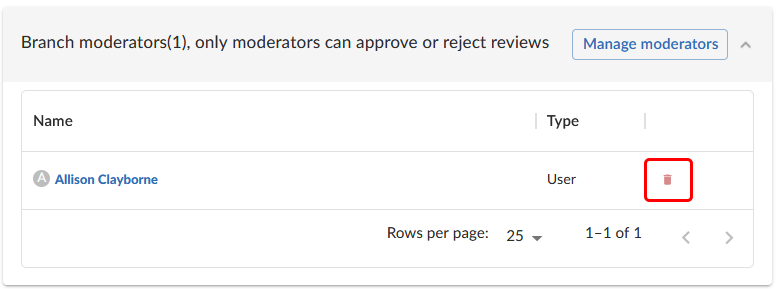 When you add a moderator to a project branch, only the moderators can approve or reject reviews restriction is enabled for a project branch. See Project settings for details on adding moderators to project branches.
