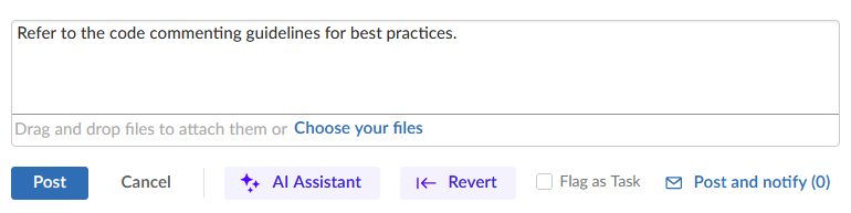 Use the AI Assistant to review and improve the text in a comment before you post it.