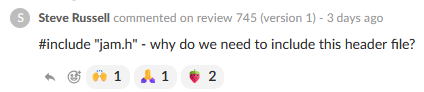 P4 Code Review comments support Emoji shorthand. So when you save a comment, emoticon text like :smile: is displayed as: ![]()