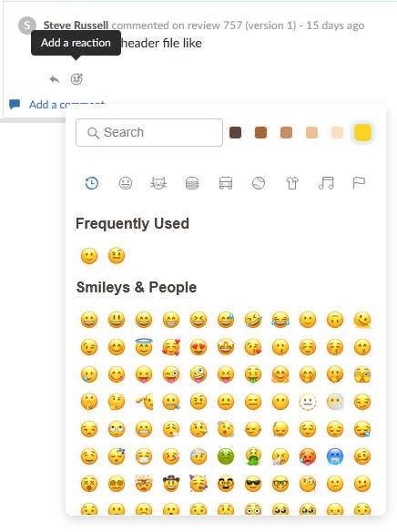 icon beneath the comment. Choose from the standard selection of emojis and also the color of the skin used in the emojis.