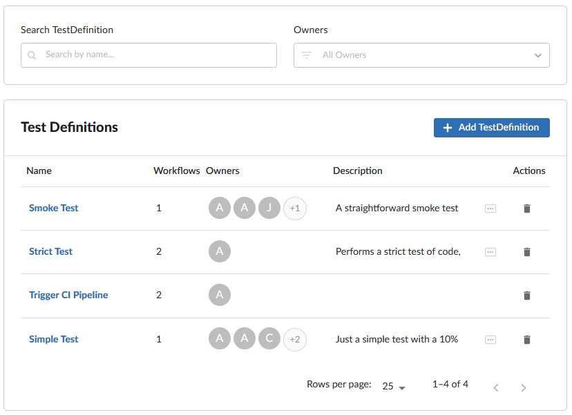 Tests are closely tied to workflows. A workflow determines when a test runs and whether it is triggered automatically or manually.