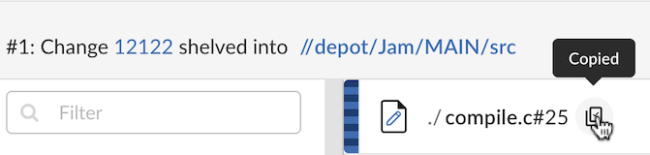 To copy the name of a file, hover of the file name and click the copy icon that appears.