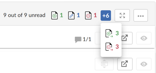 Total number of file comments: The total number of comments for a file. This is displayed as a fraction of the number of unread comments within the total number of comments. The unread comment count is specific to the logged-in user.