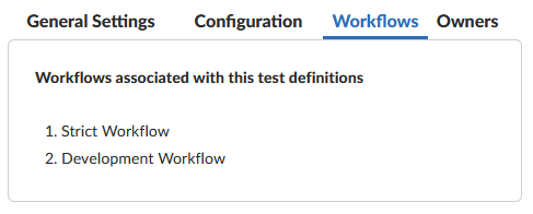 The Workflows column displays how many workflows the tests are associated with. To view which workflows exactly: