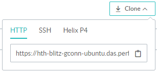 2. Click Clone, select the authentication method (HTTP, SSH, or Helix P4), and copy the path.
