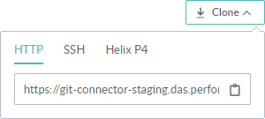 2. Click Clone, select the authentication method (HTTP, SSH, or Helix P4), and copy the path.