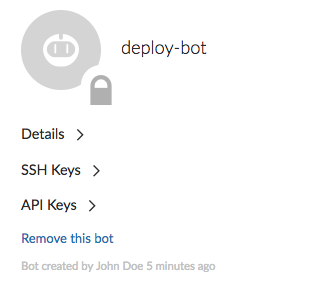 Bots enable access to projects without using user credentials. Perforce TeamHub can securely grant program access to projects using either a bot's credentials, SSH keys, or API keys.