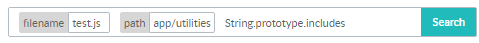 For example, String.prototype.includes filename:test.js path:app/utilities followed by Enter, TeamHub creates the filename as a tag and path as a tag: