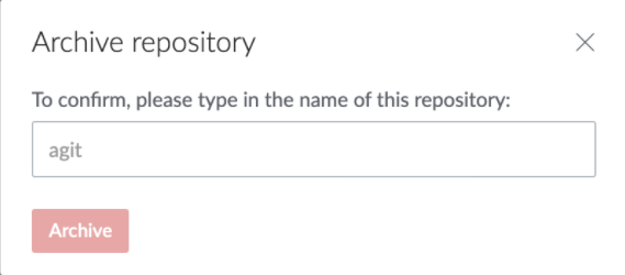 When requested, confirm the archive action by entering the repository name and clicking Archive.