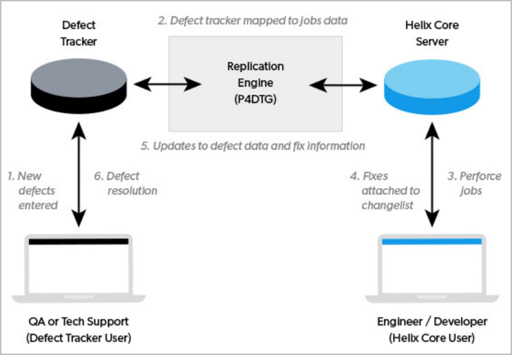 - P4 DTG replicates the fix from P4 Server to the defect tracker.