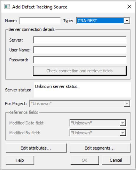The plugin for your defect tracker might enable you to specify other proprietary settings. If so, click Edit Attributes... to change these settings. For details, see Configure plug-in attributes.
