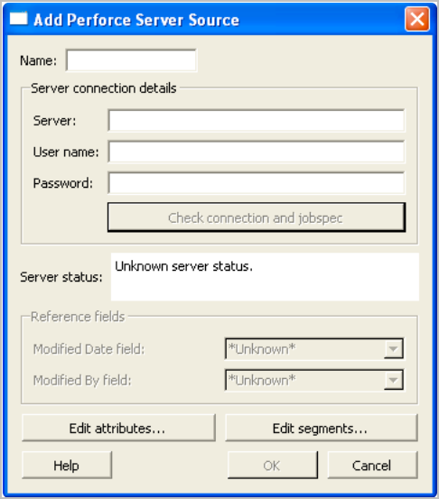 - On the P4 Server Source or Defect Tracking Source tab, click Edit Segments.... The Edit Segments dialog appears.