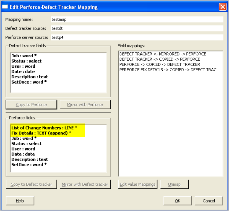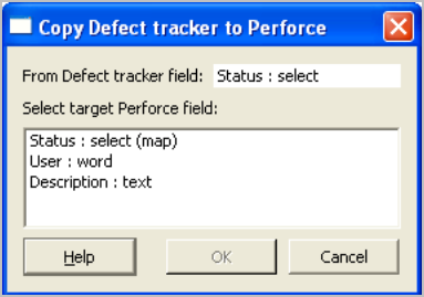 - To replicate defect tracker fields in P4 Server, select the source field in the Defect tracker fields pane and click the Copy to Perforce or Mirror with Perforce button.