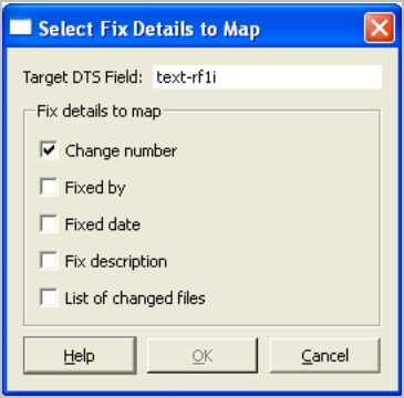 P4 DTG enables you to configure how data from fixes submitted in P4 Server are transmitted to the defect tracker. To add fix mappings, click Fix Details in the Perforce Fields list.