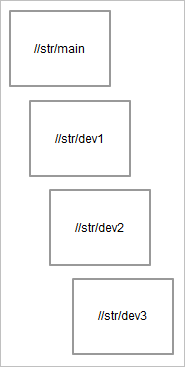 Assume we have a stream hierarchy The set of parent-to-child relationships between streams in a stream depot. in a stream depot named str with a mainline stream and three development streams: