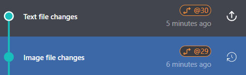 The local version is reconciled and a new pending changelist is created. A badge with the pending changelist number is displayed on the version in the timline. Mouse over the badge to view information.