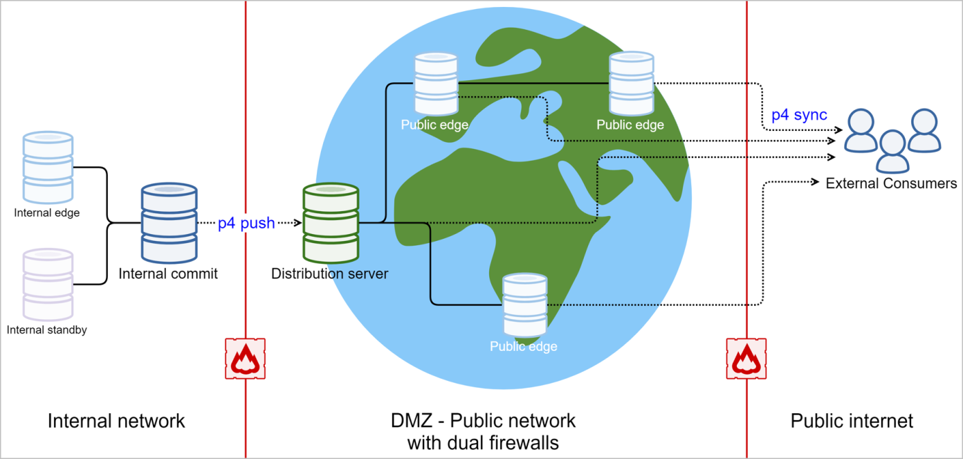 1. An internal server uses p4 push to push content to the distribution server, which is located in a DMZ. The distribution server does not accept p4 submit.