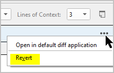 On the Pending tab, To revert the entire file, on the File Header, click the ... button, and click Revert. To revert your edit of any segment of any file, click the |