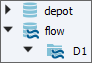 P4V displays the stream badge both for the stream depot and the folder that contains the files associated with the stream. For example, the Depots tab shows //flow/D1 is a stream name within the stream depot named flow.